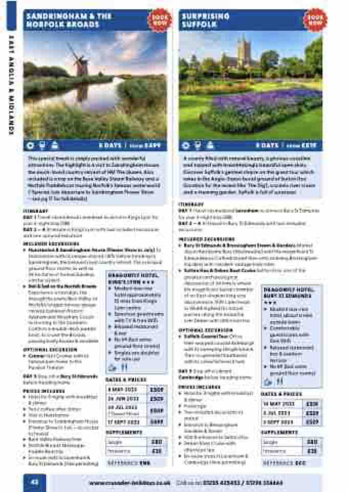 This special break is simply packed with wonderful attractions. The highlight is a visit to Sandringham House, the much-loved country retreat of HM The Queen. Also included is a trip on the Bure Valley Steam Railway and a Norfolk Paddleboat touring Norfolk's famous waterworld (*Special July departure to Sandringham Flower Show