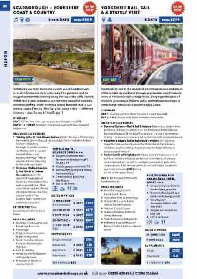 a resort of immense style with some fine gardens and an elegant promenade running along the top of the cliffs. Historic charm and scenic splendour surround the beautiful Yorkshire coastline and the North Yorkshire Moors National Park is just minutes away (See pg 11 for Early Getaway 4 day* – different itinerary – Also Turkey & Tinsel 5 day*)