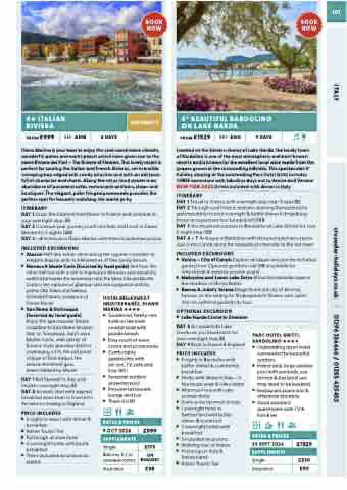 DAY 2 Continue your journey south into Italy and head to Diano Marina for 5 nights. DBB