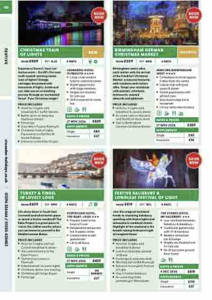 Porterage & welcome drink Morning visit to Marlborough Entrance to Longleat Festival of Light