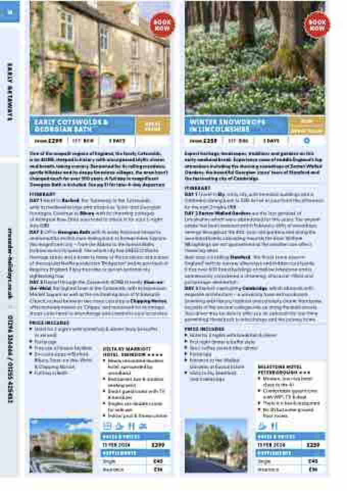 Expect heritage, landscapes, traditions and gardens on this early weekend break. Experience some of middle England’s top attractions including the stunning snowdrops at Easton Walled Gardens, the beautiful Georgian ‘stone’ town of Stamford and the fascinating city of Cambridge