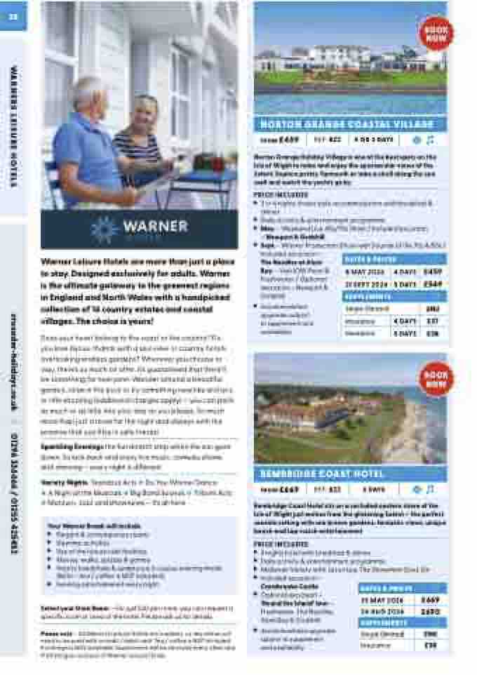 Warner Leisure Hotels are more than just a place to stay. Designed exclusively for adults, Warner is the ultimate gateway to the greenest regions in England and North Wales with a handpicked collection of 16 country estates and coastal villages. The choice is yours!