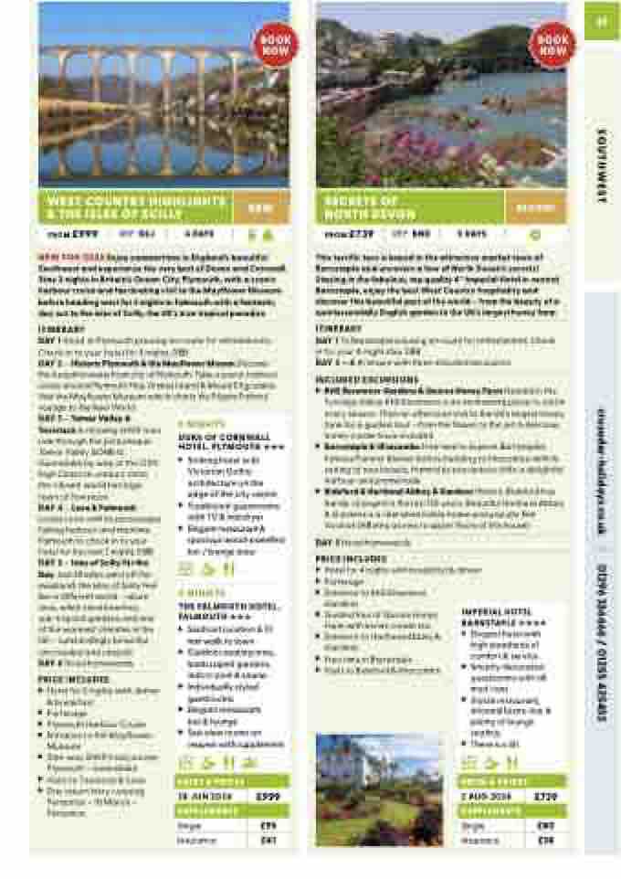NEW FOR 2026 Enjoy summertime in England’s beautiful Southwest and experience the very best of Devon and Cornwall. Stay 3 nights in Britain’s Ocean City, Plymouth, with a scenic harbour cruise and fascinating visit to the Mayflower Museum before heading west for 2 nights in Falmouth with a fantastic day out to the Isles of Scilly, the UK’s true tropical paradise