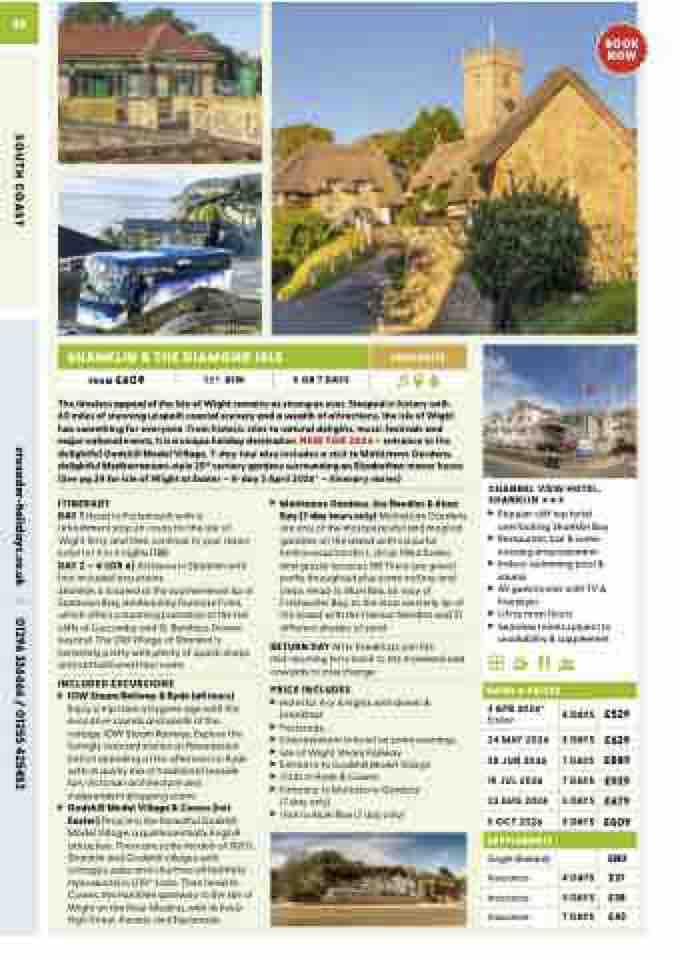 60 miles of stunning unspoilt coastal scenery and a wealth of attractions, the Isle of Wight has something for everyone. From historic sites to natural delights, music festivals and major national events, it is a unique holiday destination. NEW FOR 2026 – entrance to the delightful Godshill Model Village. 7-day tour also includes a visit to Mottistone Gardens, delightful Mediterranean-style 20th century gardens surrounding an Elizabethan manor house (See pg 24 for Isle of Wight at Easter – 4-day 3 April 2026* – itinerary varies)