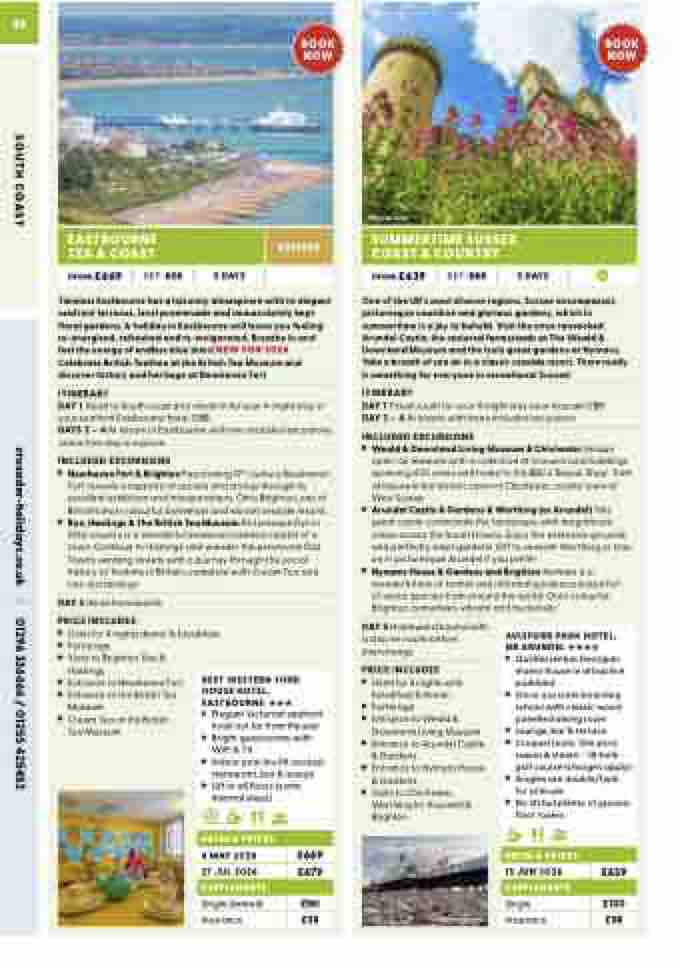 DAY 1 Head to South coast and check in for your 4-night stay in your seafront Eastbourne hotel. DBB