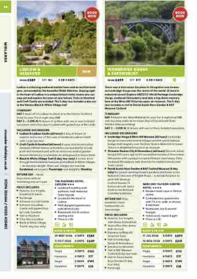 Visit to Ironbridge Gorge & Shrewsbury Entrance to Wroxeter Visit to RAF Museum Cosford (5 day tour only) Visit to David Austin Rose Garden (5 day tour only)