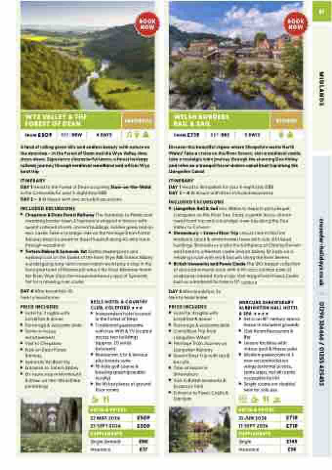 DAY 1 Head to Shropshire for your 4-night stay DBB DAY 2 – 4 At leisure with three included excursions
