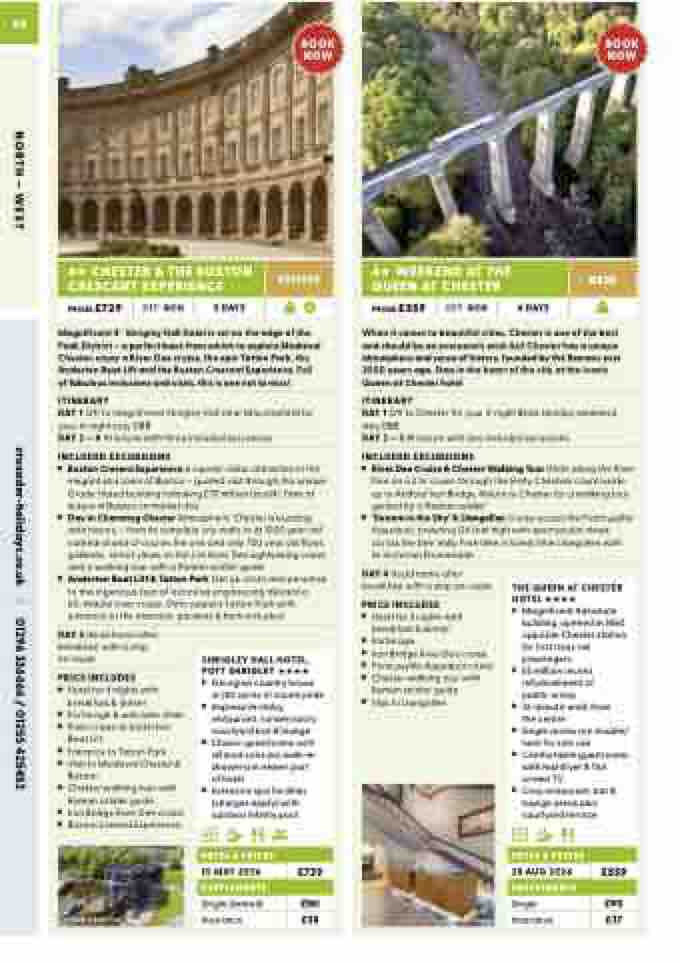 Magnificent 4* Shrigley Hall Hotel is set on the edge of the Peak District – a perfect base from which to explore Medieval Chester, enjoy a River Dee cruise, the epic Tatton Park, the Anderton Boat Lift and the Buxton Crescent Experience. Full of fabulous inclusions and visits, this is one not to miss!