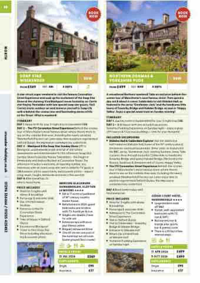 DAY 2 – The ITV Coronation Street Experience Behind-the-scenes tour of Manchester’s most famous street where there’s more to see on the cobbles than ever, including the newly unveiled Weatherfield Precinct set. Later enjoy time to explore regenerated Salford Quays, the impressive contemporary waterfront