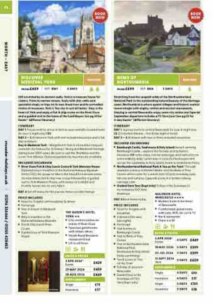 Stretching from the unspoilt wilds of the Northumberland National Park to the outstanding natural beauty of the Heritage coast, Northumbria is where quaint villages and historic market towns mingle with mighty castles and ancient monuments. Staying in central Newcastle, enjoy some city action too! Special September departure includes a TV Vera tour! See pg 25 for 4-day Easter* (different itinerary)