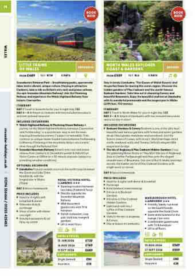 DAY 1 Travel to North Wales for your 4-night stay DBB