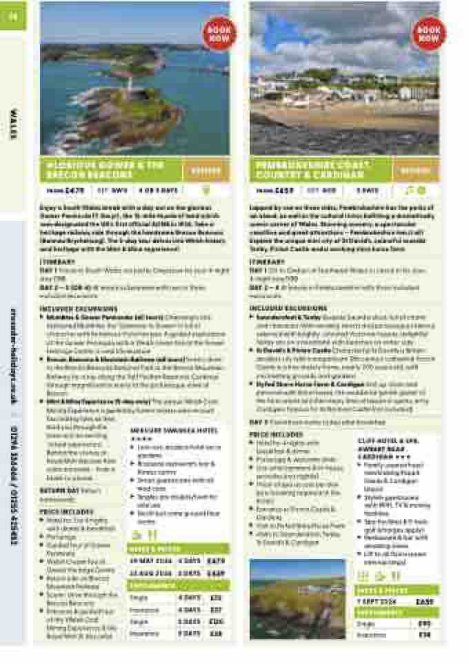 DAY 1 Off to Gwbert in Southwest Wales to check in for your 4-night stay DBB