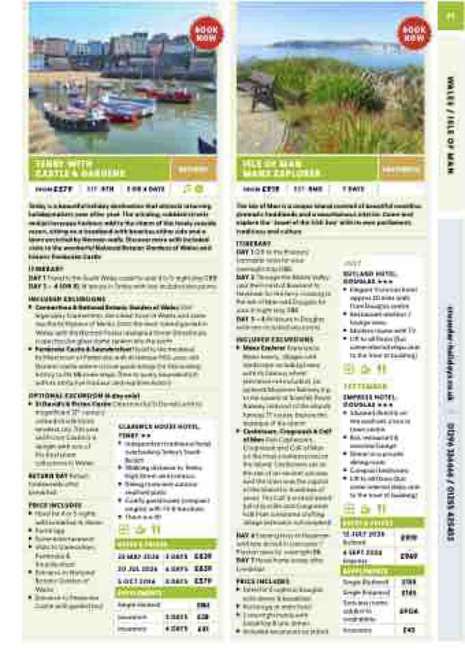 DAY 1 Travel to the South Wales coast for your 4 or 5-night stay DBB DAY 2 – 4 (OR 5) At leisure in Tenby with two included excursions