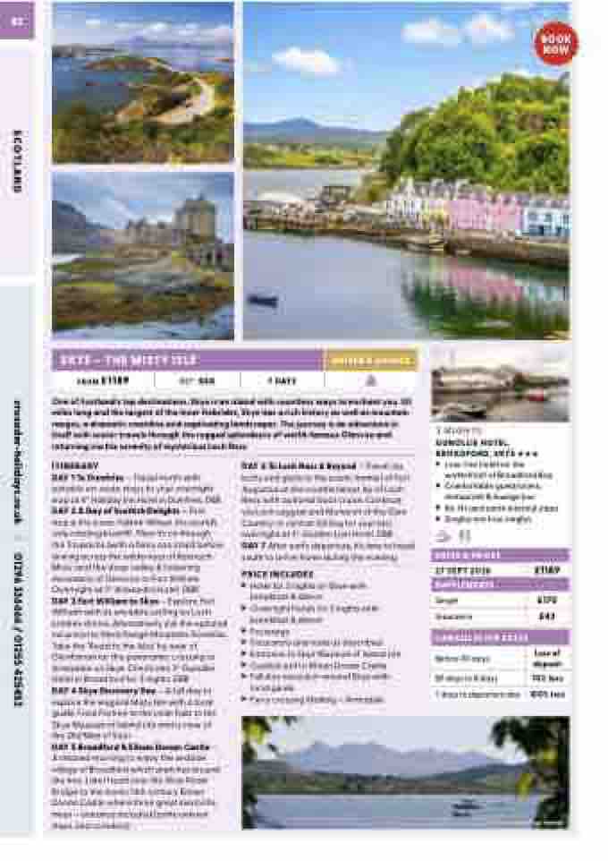 DAY 1 To Dumfries – Travel north with suitable en-route stops to your overnight stop at 4* Holiday Inn Hotel in Dumfries. DBB DAY 2 A Day of Scottish Delights – First