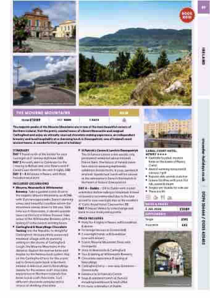 DAY 2 An early start to Cairnryan for the crossing to Belfast and onto Newry and 4* Canal Court Hotel for the next 4 nights. DBB DAY 3 – 5 At leisure in Newry with three included excursions