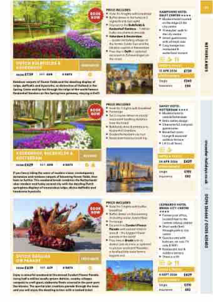 – quaint old fishing village on the former Zuider Zee and the likeable capital of Amsterdam Free day in Delft or optional excursion to Scheveningen on the coast